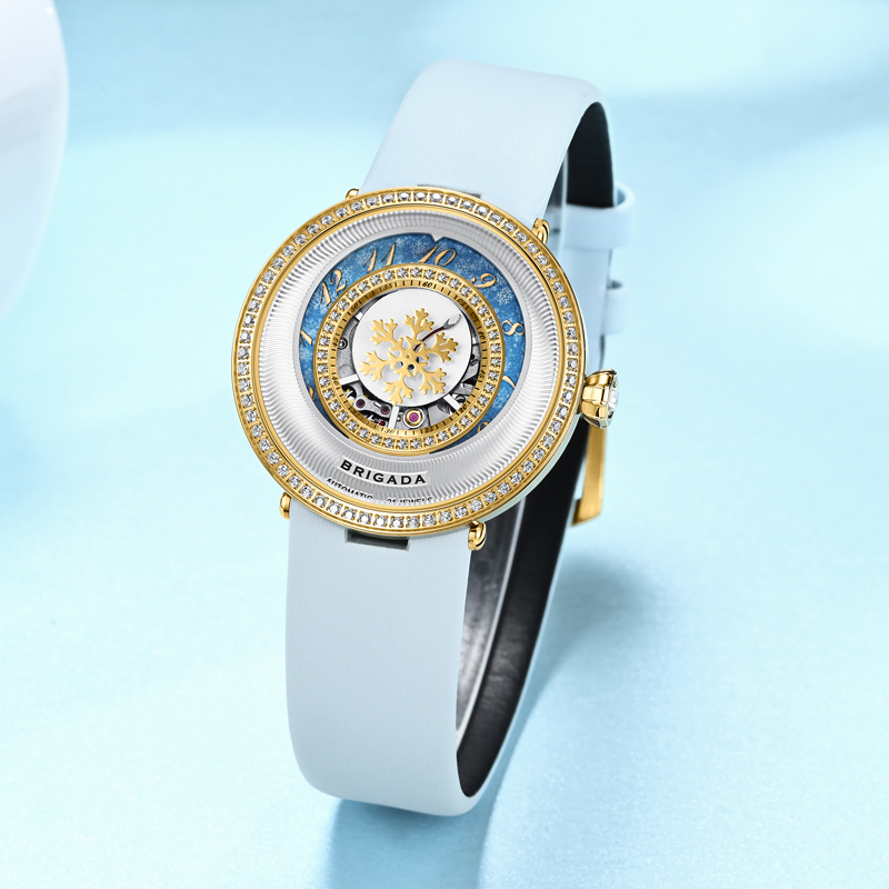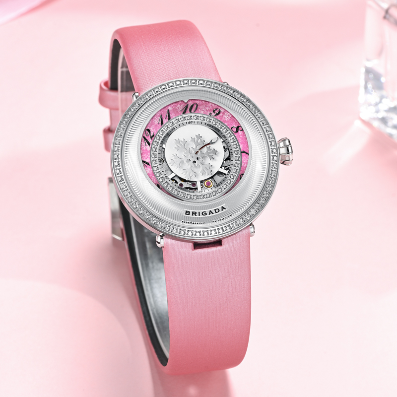 BJD-60205L女士手表机械表进口机芯 雪花女神防水镂空皮带腕表